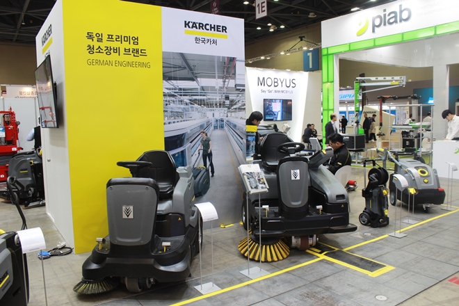 4차산업혁명의 최신기술이 반영된 물류산업의 미래를 가늠할 '국제물류산업대전 2019(KOREA MAT 2019)'가 지난 16일 일산 킨텍스에서 개최됐다. 한국카처는 물류산업대전에서 보행식 청소장비, 입승식 청소장비, 탑승식 청소장비 등의 클리닝 솔루션 장비를 선보였다.