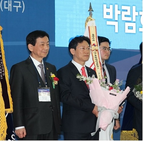 ▲ 케이엠에스 김용한 대표의 대통령 표창 수상 모습
