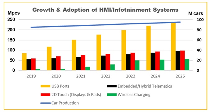 ▲ HMI/인포테인먼트 시장 전망 (2019~205년) 자료 : 마이크로칩