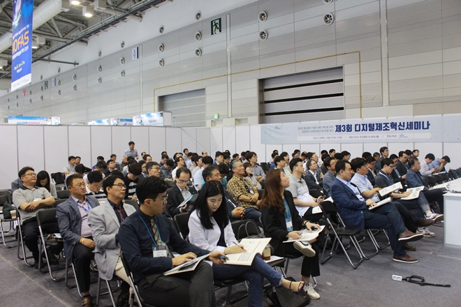 스마트팩토리 구축을 위한 해법을 제시하는 '제3회 디지털제조혁신 세미나'가 창원 컨벤션센터(CECO)에서 16일에 열렸다. 이번 세미나는 디지털매뉴팩처링페어 코파스(KOFAS) 2019 기간 중에 열려 많은 주목을 받았다.