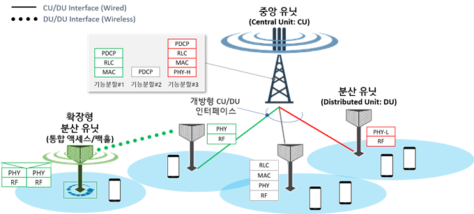 ▲5G 개방형 기지국 분산 장치 기술 개념도