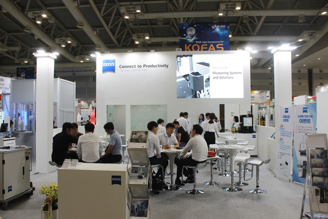 코파스 2019에서는 다수의 업체가 참가해 자사의 장비 및 솔루션을 참관객에 선보였다. 광학 및 광전자 산업 분야 선도 기업인 자이스코리아는 3차원 측정기 ‘스펙트럼’과 산업용 X-ray 장비인 ‘보셀로’ 등의 장비를 전시했다. 한편, 자이스 100주년 기념 고객이벤트를 동시에 진행해 다수의 참관객이 부스를 방문했다.