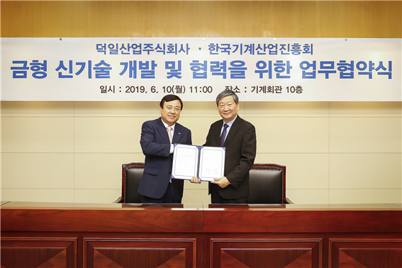 덕일산업(주)·오레스트(주)와 한국기계산업진흥회(이하 기진회)는 6월 10일(월) 오전 11시, 여의도 기계회관 본관에서 '금형 신기술 개발 및 협력'을 위한 업무협약을 체결했다.