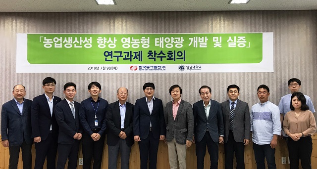 한국동서발전이 지난 9일, 경북 경산 영남대학교에서 영남대와 공동으로 수행하는 ‘LED 광원을 적용한 농업 생산성 향상 태양광 시스템 개발’ 착수회의를 가졌다.