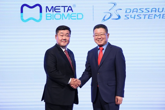 다쏘시스템과 협약을 맺은 메타바이오메드는 치과 및 정형외과용 재료 및 기기를 제조하는 바이오 기업이다. 특히, 치아 신경 치료 치근관을 채우는 충전재 분야에서 세계 1위 기술력을 보유했다. 메타바이오메드는 신기술 개발을 위해 R&D 부문에 매출액의 10% 이상을 투자할 정도로 연구개발에 적극적인 기업이다.