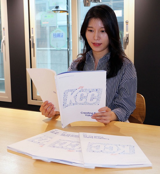 KCC는 매년 국제 기준 GRI(Global Reporting Initiative)와 ISO26000, UN 지속가능개발목표(UN SDGs)에 따라 지속가능성 현황을 담은 보고서를 외부 기관의 검증을 거쳐 국내외 다양한 이해관계자에게 공개하고 있다.