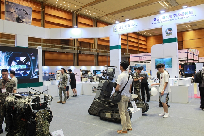 육군 부스에서는 투발형 타격 드론, 제독 의무 드론, 수송용 대형 드론, 지뢰 탐지 드론 등 다양한 용도로 활용되는 드론을 확인할 수 있었다. 부스 내에 참가한 드론봇 전투단은 VR·AR 기반의 드론봇 미래 전투 시뮬레이션 체험관을 운영해 참관객으로부터 좋은 호응을 얻었다.
