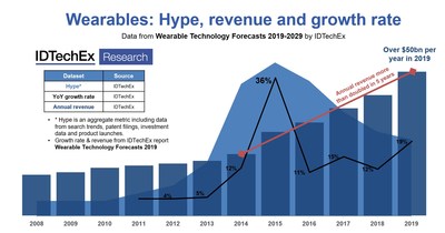 그러나 2019년에는 헤드라인 빈도가 감소하고, 투자는 더욱 집중되는 한편, 웨어러블 제품에 대한 과대광고는 사라졌다. IDTechEx의 웨어러블 기술에 대한 종합 연구는 지난 수년간 이 부문의 발전 성과 및 향후 10년간의 상황 변화를 예측했다.