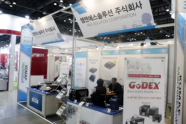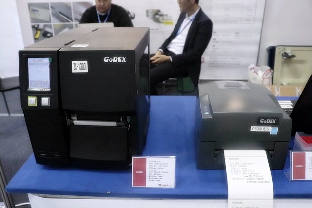 엠앤에스솔루션은 튜브 프린터 외에도 바코드 프린터, 라벨터치기를 전시했다. 엠앤에스솔루션은 바코드 프린터 산업의 리더라 불리는 ‘고덱스(GoDEX)’와 함께 바코드 프린터를 국내에 출시하고 있다.