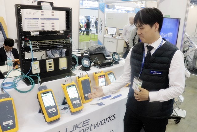 박수만 플루크네트웍스 솔루션사업부 과장은 “마이크로스캐너 시리즈와 함께 이번 전시회에서 선보이는 제품들은 이더넷 케이블, 통신 케이블들을 계측하는 계측 장비”라며 “선로에 문제가 있거나 끊겨 있으면 통신이 잘되지 않는데, 이 장비들은 이러한 문제점을 사전에 예방해주고 문제가 생기면 어디서 발생했는지 신속하게 알려주는 역할을 한다”고 소개했다.