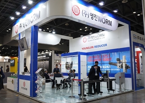서보용 정밀 WORM 감속기(듀얼리드박스) 전문 생산업체인 영진WORM(영진웜)이 일산 킨텍스1 전시장에서 개최 중인 2019 한국기계전에서 다양한 산업 분야에 적용할 수 있는 최신 감속기를 전시했다.