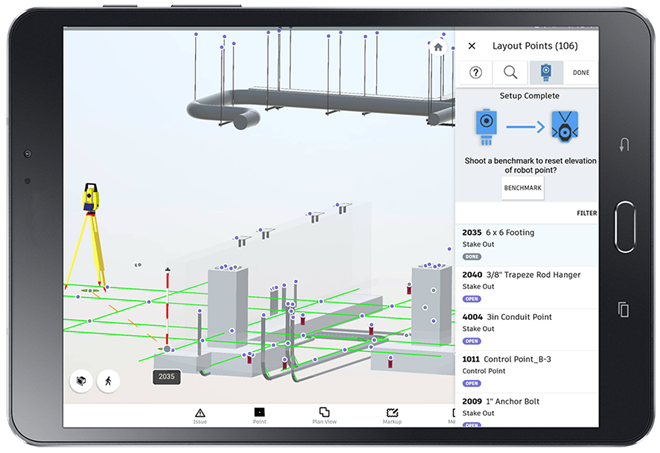 클라우드를 통해 Layout 앱에서 모델 데이터에 직접 접근할 수 있어 프로젝트에 참여하는 누구나 통합된 BIM 360 플랫폼에서 협업 가능해졌다. 또한, 로보틱 토털 스테이션(Robotic Total Station, RTS) 및 GPS 기기를 사용해 조정된 모델을 레이아웃 과정에 직접 연결해준다.