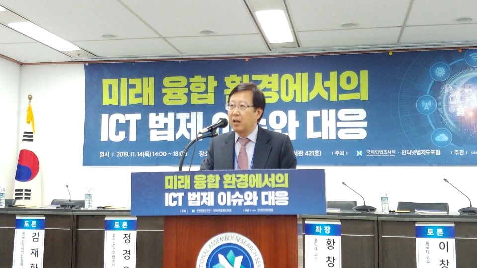 인터넷법제도포럼 홍대식 회장(서강대학교 교수)은 환영사에서 “우니라나 ICT 분야의 법제는 급변하는 미래 융합 환경의 변화를 충분히 반영하지 못하고 있다는 지적을 받아왔다.”며 “현행법의 규제와 한계로 신기술의 개발과 활용, 새롭고 혁신적인 서비스 발국에도 제약이 있었다.”고 지적했다.