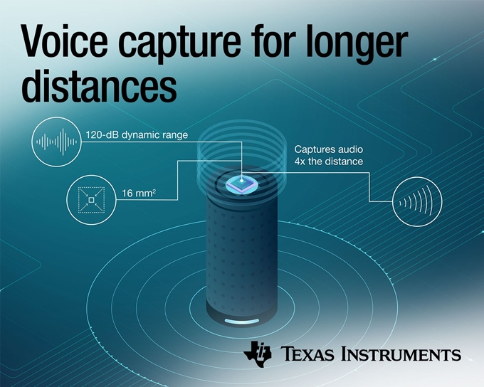 TLV320ADC5140의 핵심 기능은 전세대에 비해 3배나 더 먼 10미터 이상 거리에서 음성을 포착할 수 있고, 106dB 이상의 동적 범위로 왜곡이 없고 선명한 오디오를 제공한다는 것이다. 더불어 저음량 음성까지 감지할 수 있는 능력이 향상됐다.