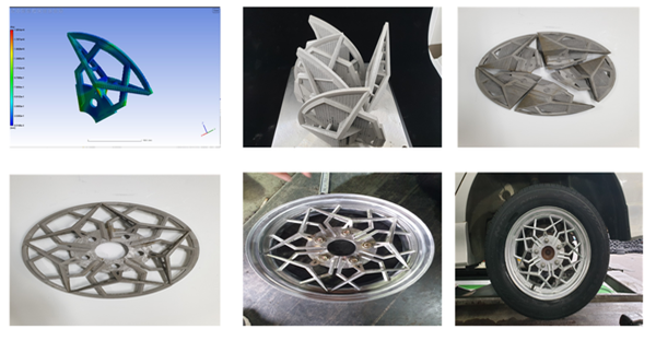 ▲금속 3D프린팅으로 자동차 휠을 설계 및 제작하는 과정