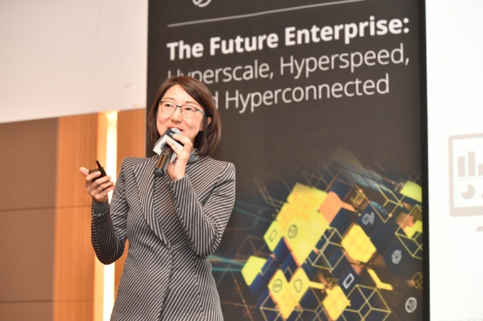 키노트 연사로 나선 한국IDC 한은선 전무에 따르면 미래의 엔터프라이즈는 에코시스템을 통해 효과적으로 경쟁하고 시장과 고객에 대한 공감(empathy)을 확장해 나감으로써 매출을 발생시키며 기업 운영 모델을 복잡한 고객 요구사항에 맞추는 능력을 보유한다. 또한, 이 모든 것은 지능화되고 권한이 부여된 민첩한 업무자원을 통해 구현된다고 설명했다.