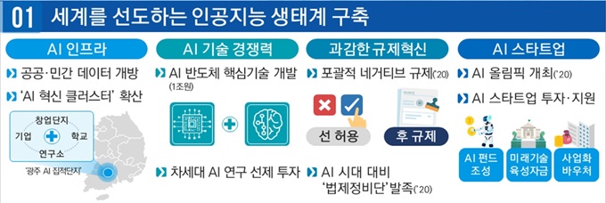 무엇보다 정부는 과감한 규제혁신 및 법제도 정비를 약속했다. ‘先(선)허용-後(후)규제’의 기본방향 하에 AI 분야 ‘포괄적 네거티브 규제 로드맵’도 수립했다. 내년에 '미래사회 법제정비단' 발족(가칭)을 통해 분야별 법제 정비를 주도할 예정이다.