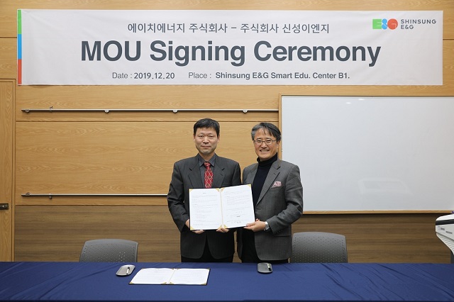 ▲ (왼쪽부터) 김동섭 신성이엔지 사장, 함일한 에이치에너지 대표