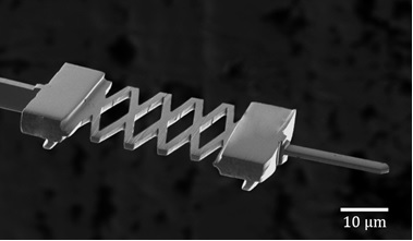 ▲ 형상기억합금으로 제작된 마이크로 로봇(모재로부터 로봇이 분리되기 직전의 모습)