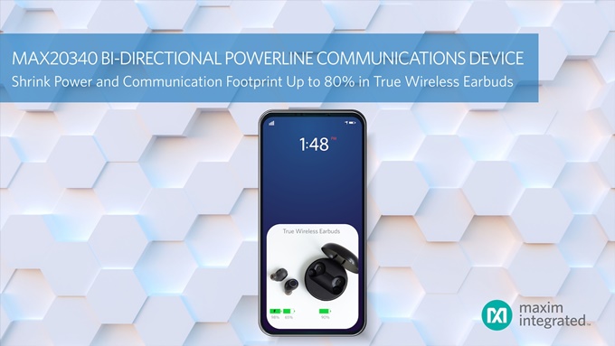 맥심 인터그레이티드 코리아)가 양방향 DC 전력선 통신(Powerline Communication, PLC) IC ‘MAX20340’을 출시했다. 초저전력 휴대용 제품 및 웨어러블 설계자들은 MAX20340을 통해 충전기에 연결되는 전원 통신과 인터페이스 크기를 줄일 수 있다.