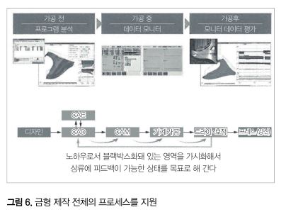 동사에서는 금형 제작에서 ‘계획한 대로 가공할 수 있는 기계’를 만들 뿐만 아니라, ‘금형 제작 전체의 프로세스’를 서포트하고 있다(그림 6).