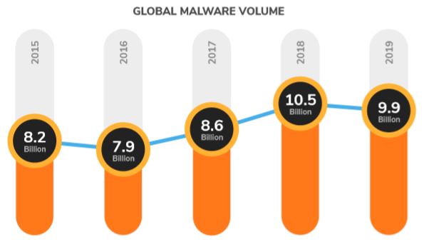 ▲년도별(2015 ~ 2019) 전세계 멀웨어 공격 규모
