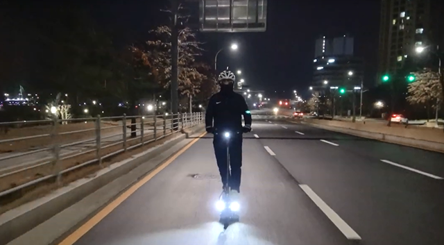 촬영은 저녁 8시부터 새벽 2시까지 진행했다. 자전거를 즐기는 사람들이 쉽게 탈 수 있는 장소와 자전거나 전동퀵보드로 출퇴근하는 사람들이 많이 타는 장소를 섭외해 촬영을 했다. 자전거와 전동퀵보드를 번갈아 타며 제품 성능을 살펴보았다.