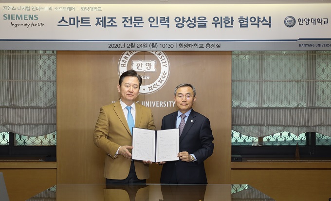 지멘스 디지털 인더스트리 소프트웨어는 한양대 LINC+ 혁신선도대학사업단과 스마트 제조 소프트웨어 교육을 위한 MOU를 맺고, 스마트 제조 분야의 전문 인력 양성을 위해 협력한다고 밝혔다.