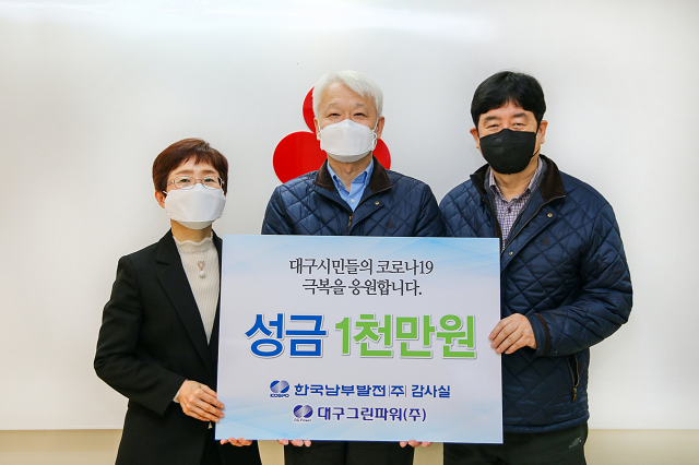 남부발전은 13일 손성학 상임감사위원과 감사실, 대구그린파워 직원들이 십시일반(十匙一飯) 자발적으로 모은 구호성금 1,000만원을 사회복지공동모금회에 전달했다고 밝혔다.
