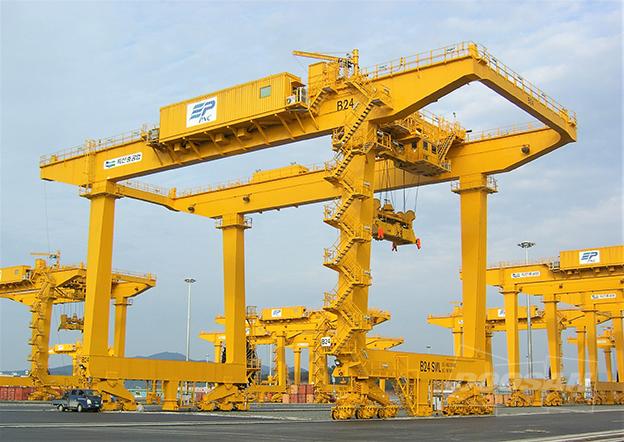 ▲ 두산중공업이 2006년 부산신항 1-1단계에 공급한 트랜스퍼 크레인