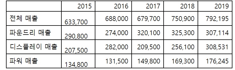 매그나칩 연도별 매출과 3개 사업부 연도별 매출   (단위. 미화 Thousand)