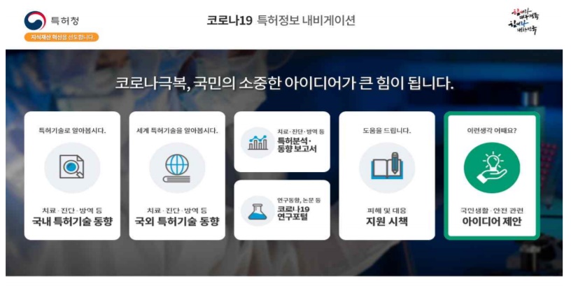 제공하는 특허정보의 범위를 해외특허까지 확대하여 학교와 연구기관의 코로나19 관련 연구원에게 실질적인 도움을 주기 위해 구축됐다.