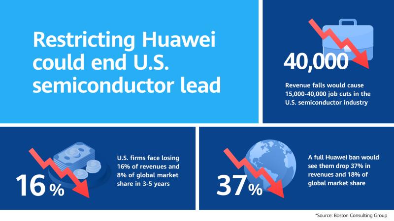 보스턴컨설팅그룹은2019년 5월 미국이 화웨이에 대한 제재 조치를 취한 이후 미국의 25개 상위 반도체 회사는 매분기 각각에 4 %에서 9 % 사이의 평균 매출이 감소했다고 밝혔다.