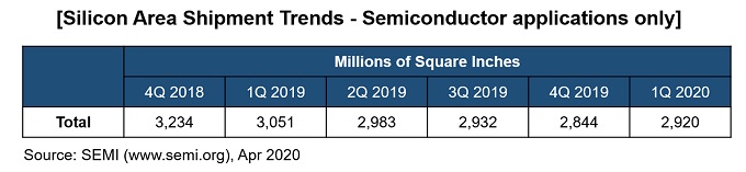 글로벌 전자 서플라이 체인을 대표하는 산업 협회인 SEMI는 2020년 1분기 전 세계 실리콘 웨이퍼 출하량이 2019년 4분기의 28억 4400만 제곱인치 대비 2.7% 상승한 29억 2000만 제곱인치라고 발표했다. 하지만 이 수치는 전년 동기인 2019년 1분기 대비해서는 4.3% 하락한 수치이다.