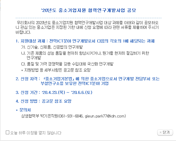 한전KDN, 중소기업지원 협력연구개발사업 공모