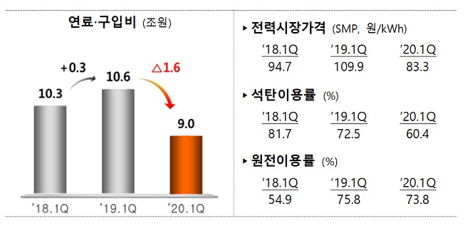 한국수력원자력과 5개 석탄화력발전사 등 발전 자회사들로부터 사들이는 전력을 포함한 연료비(4조1391억원)의 경우 연료단가 하락으로 전년 동기대비 8813억 원 감소했다.