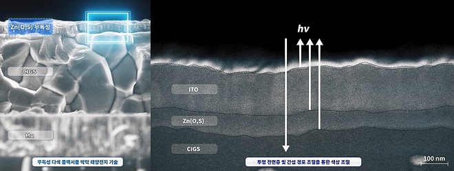 ▲CIGS 박막 태양전지에 적용된 무독성 아연 완충층 상세 구조도