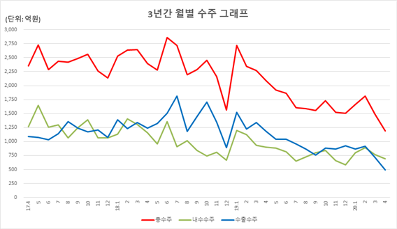 수입 - 전월비 17.2% 감소
