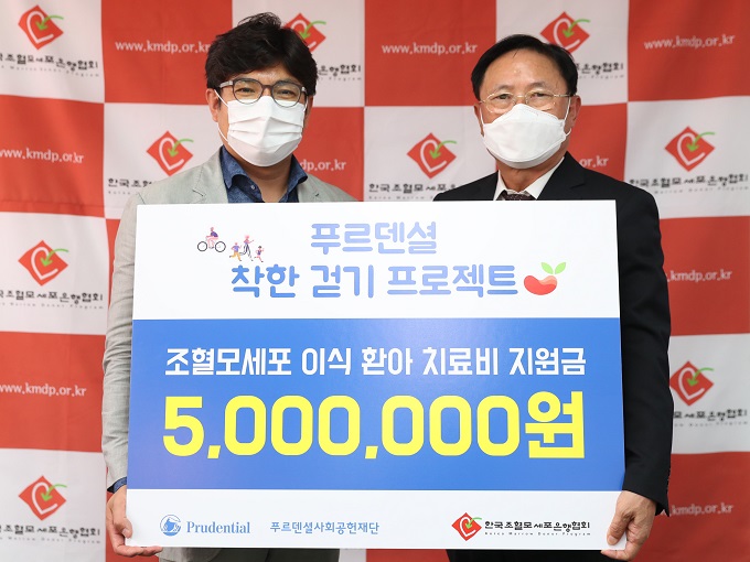 푸르덴셜사회공헌재단은 프로젝트 성공적인 종료를 기념해 혈액암 및 혈액질환 환자들의 치료와 회복을 위한 기부금 총 1000만원을 조성했다. 이번에 한국조혈모세포은행협회에 기부한 500만원 외 나머지 금액은 가장 많은 걸음 수를 기록한 임직원 및 라이프플래너 상위 10명에게 각각 50만원 상당의 기부증서를 수여해 혈액암 및 혈액질환 환아를 지원하는 기관에 전달할 예정이다.
