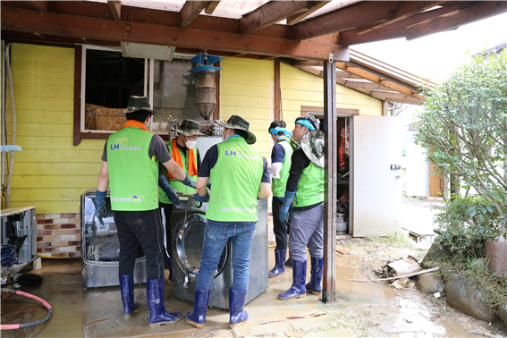 한편 지난 13일(목)에는 LH 임직원 100여명으로 구성된 나눔봉사단이 막심한 피해를 입은 전남 구례군 수해현장을 방문해 시설물 철거 및 축사 복구 등에 힘을 보탰다.