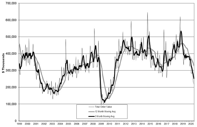 ▼ 2020년 5월 미국 공작기계 수주 현황 (Total U.S. Manufacturing Technology Orders Through May 2020)