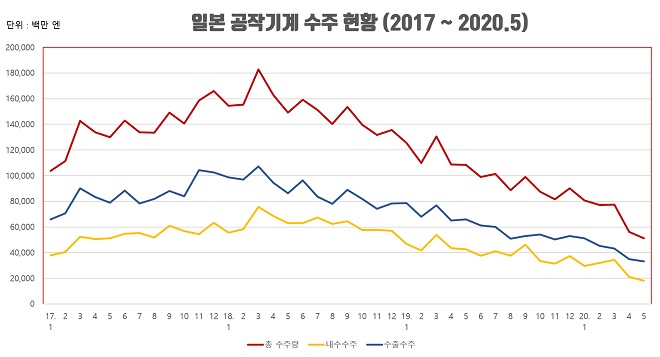 ▼ 2020년 5월 일본 공작기계 수주 현황