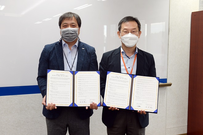 ▲ ETRI와 서울대가 차세대 AI 반도체 분야 기술 공유와 개발을 위해 협력하기로 했다. (왼쪽부터 ETRI 강성원 ICT창의연구소장, 서울대 이종호 반도체공동연구소장) (사진 : ETRI)
