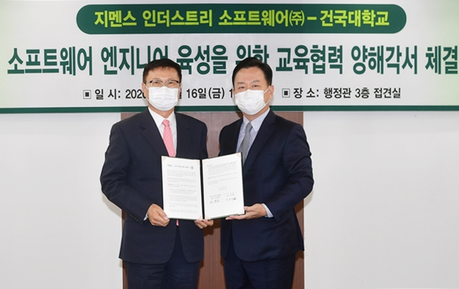 지멘스 디지털 인더스트리 소프트웨어는 건국대학교와 소프트웨어 교육을 위한 MOU를 맺고, 건국대 공과대학의 융합 공학 역량을 갖춘 전문 인재를 육성 및 스마트 모빌리티(smart mobility) 분야의 전문 인력 양성을 위해 협력한다고 밝혔다.