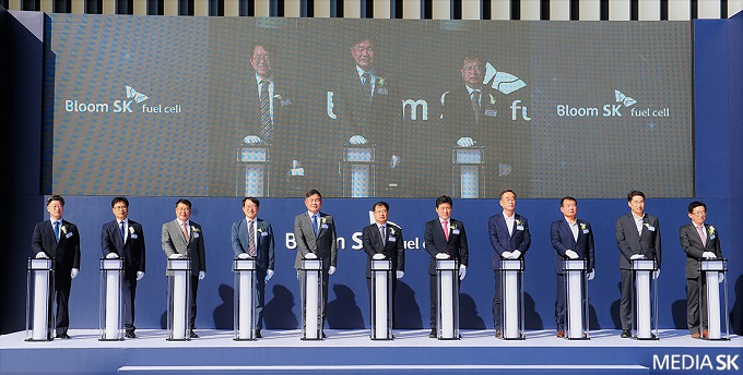 SK건설은 지난 20일 경북 구미에 위치한 블룸SK퓨얼셀 제조공장의 준공을 기념해 개관식 행사를 열었다.