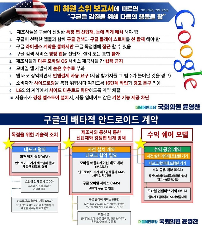 윤영찬 "구글 앱 선탑재시키고 검색 광고 수익 공유…타사 앱은 방해"