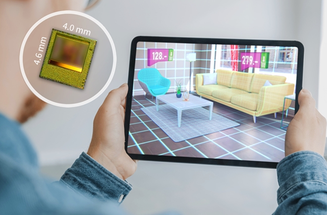 ▲새로운 REAL3 ToF 칩은 소형 카메라 모듈에 통합돼 다양한 AR 애플리케이션을 위해 단·장거리에서 깊이를 측정한다.