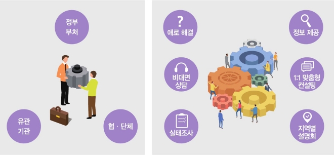 지원센터는 일본 수출규제 및 영향을 분석하고, 관련 정보를 온·오프라인으로 제공하며, 기업 실태조사 및 애로사항 파악, 품목별 기업 수입 동향, 재고 현황 등 수급 실태 파악, 단기 수급 애로 지원, 대체수입처 확보, 국내 생산 기반 확충을 위한 인허가 등 지원, 피해기업 국세·관세 납기 연장 혹은 장수 유예 등 세제 지원으로 수출규제로 인한 기업 피해를 최소화하고 신속히 해결하기 위해 필요한 모든 사항을 지원하기로 했다.