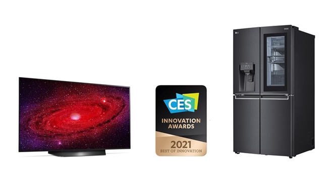LG전자는 48형(대각선 길이 약 121센티미터) 올레드 TV와 음성만으로 냉장고 문이 열리는 인스타뷰(Instaview, 국내명: 노크온 매직스페이스) 냉장고가 각각 게이밍 부문과 생활가전 부문에서 CES 최고 혁신상을 수상했다.