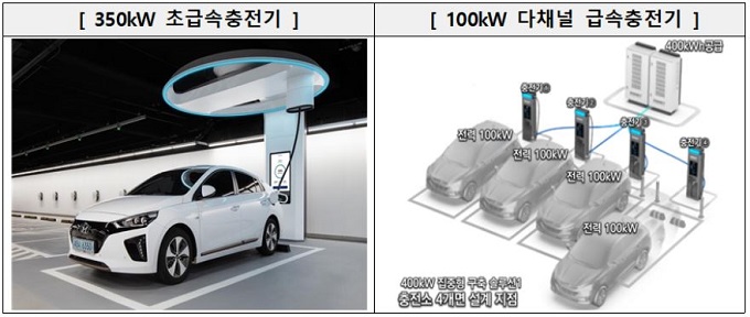 이미 설치되었던 100kW급 급속충전기로는 약 400km 주행가능한 전기차 배터리를 80% 충전하는데 약 1시간이 소요됐다. 그러나 앞으로 350kW급 초급속충전기가 설치되면 약 20분만에 충전할 수 있어 충전속도가 획기적으로 개선된다.